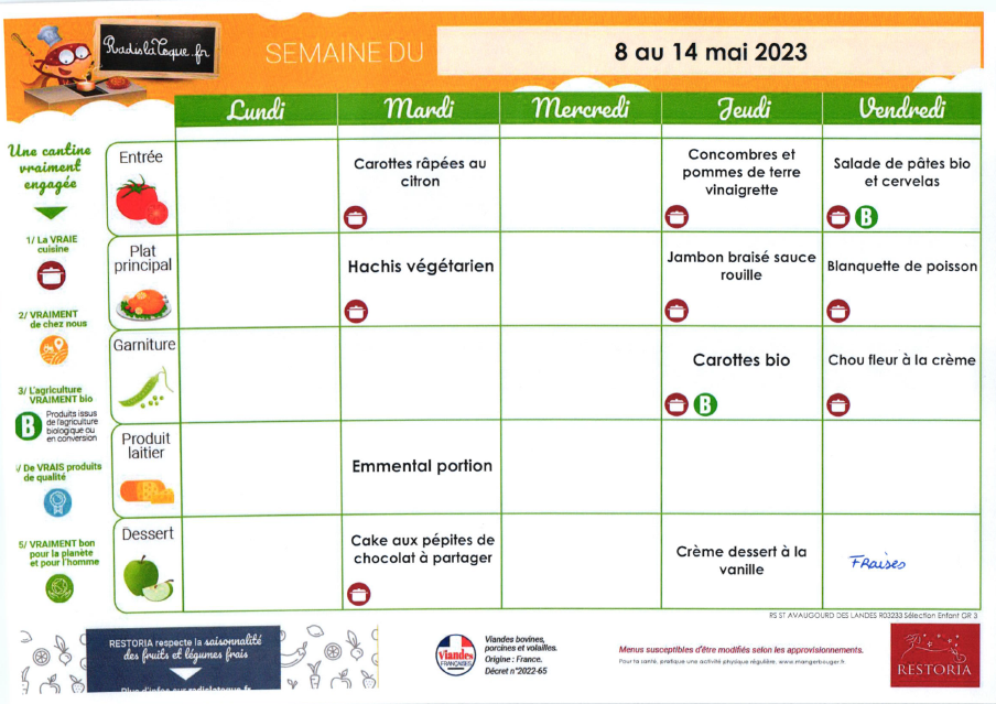 Il est important que vos enfants respectent le règlement intérieur (respect des personnels, des matériels, de la nourriture). Tout manquement pourra faire l’objet d’une sanction.